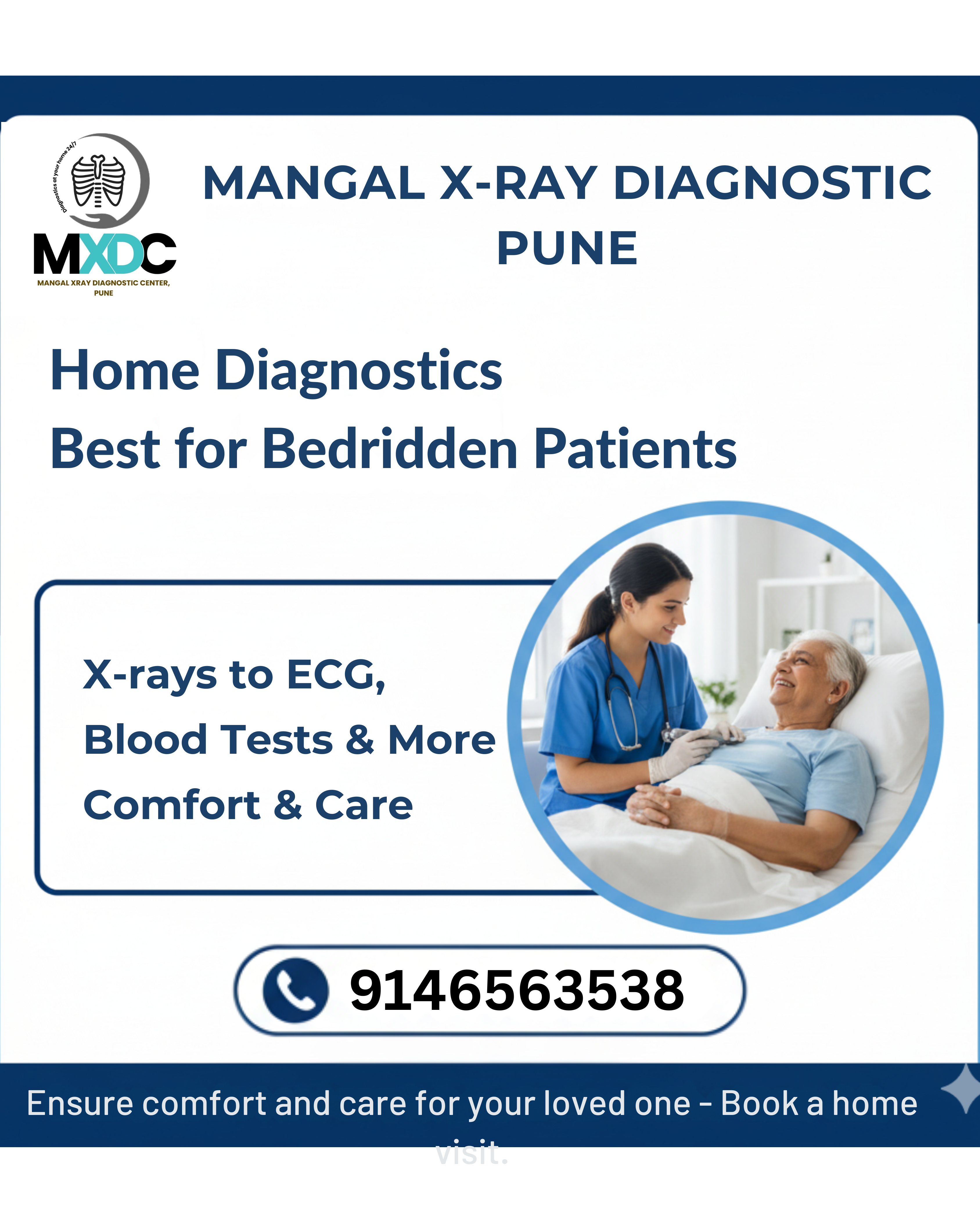 Experience the convenience of our Portable X-ray & ECG home service, available bedside in Pune & PCMC. Receive your X-ray results instantly with on-the-spot film delivery