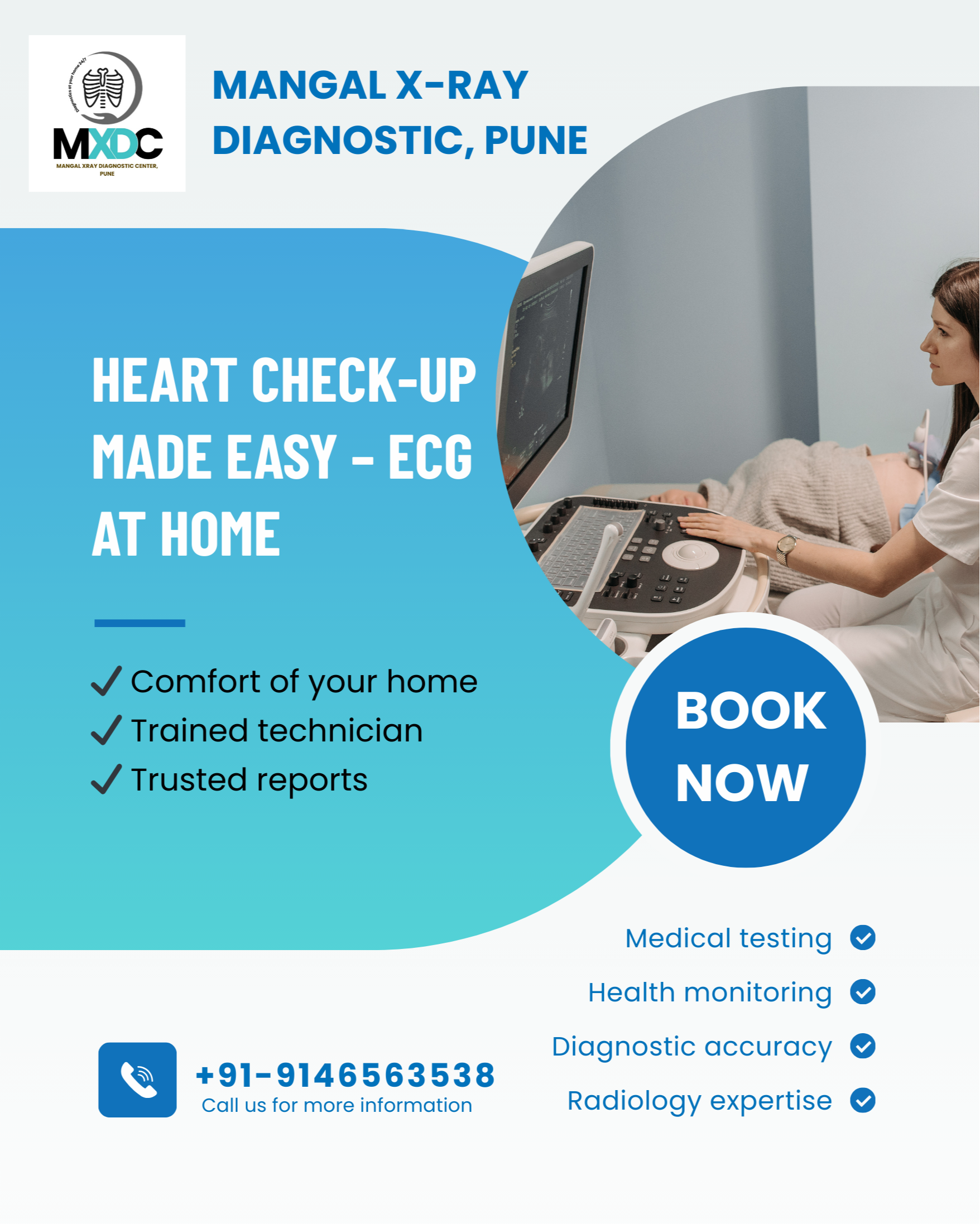 Experience true heart health convenience. When you need cardiac monitoring, finding an ECG service near me shouldn't be a struggle. Mangal offers professional ECG service at home, perfect for seniors or those with mobility concerns. Our certified technicians arrive promptly, perform the test efficiently, and ensure your comfort throughout. It's a quick, non-invasive process that provides your doctor with vital information instantly. Stop worrying about clinic wait times and book your mobile X-ray near me or ECG appointment with Mangal for compassionate, prompt care. 💙 Schedule your hassle-free ECG at Home appointment this week!